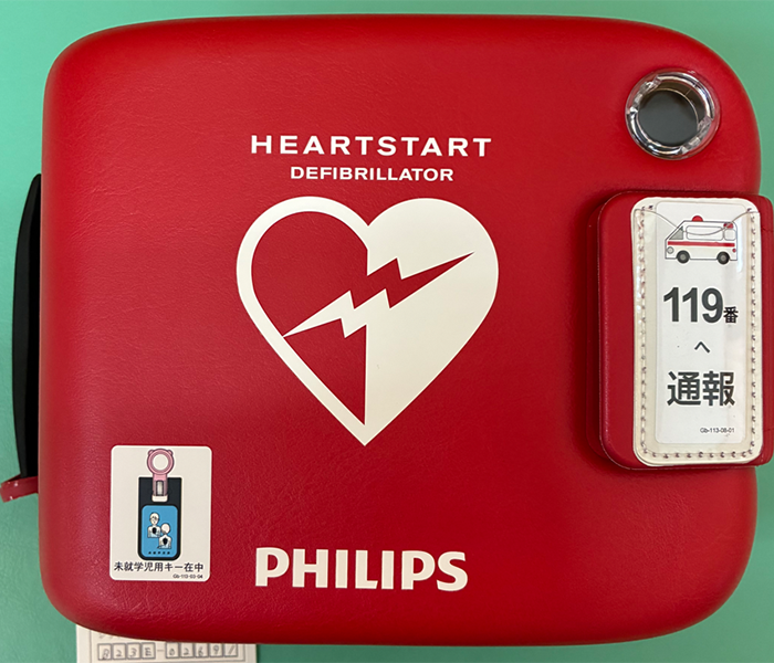 AED(Automated External Defibrillator[自動体外式除細動器]) 心停止状態の心臓に対して、電気ショックを行い、心臓を正常なリズムに戻すための医療機器です。